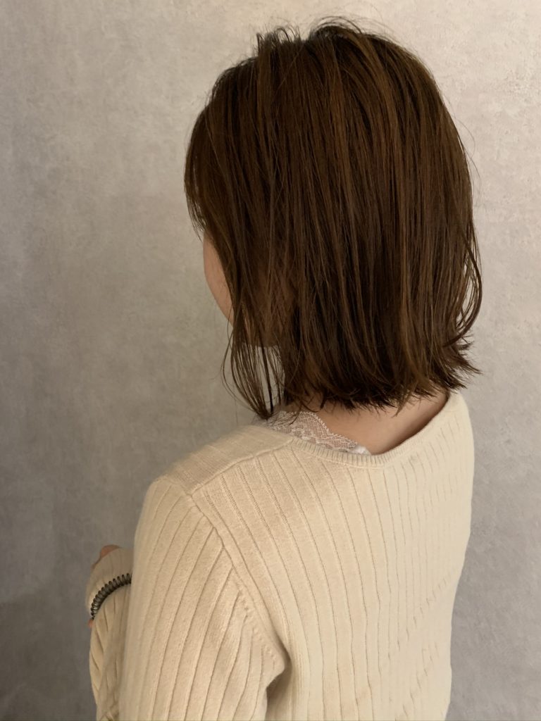 肩甲骨の上ぐらいまであったミディアムスタイルをバッサリ