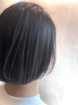 首がでるぐらいまで長さをカット!!丸みを出す為に先にグラデーションという段をきっていき毛先に切りっぱなし感を出す為に最後に毛先をカット!!アイロンやコテで外ハネにしても◎