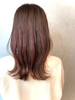 明るさはそんなに変わらず暖色系の艶感がかなり増しました!!以前ブリーチでハイライトを入れていたので、特にその部分が黄色く退色していましたが綺麗に染まりました☆